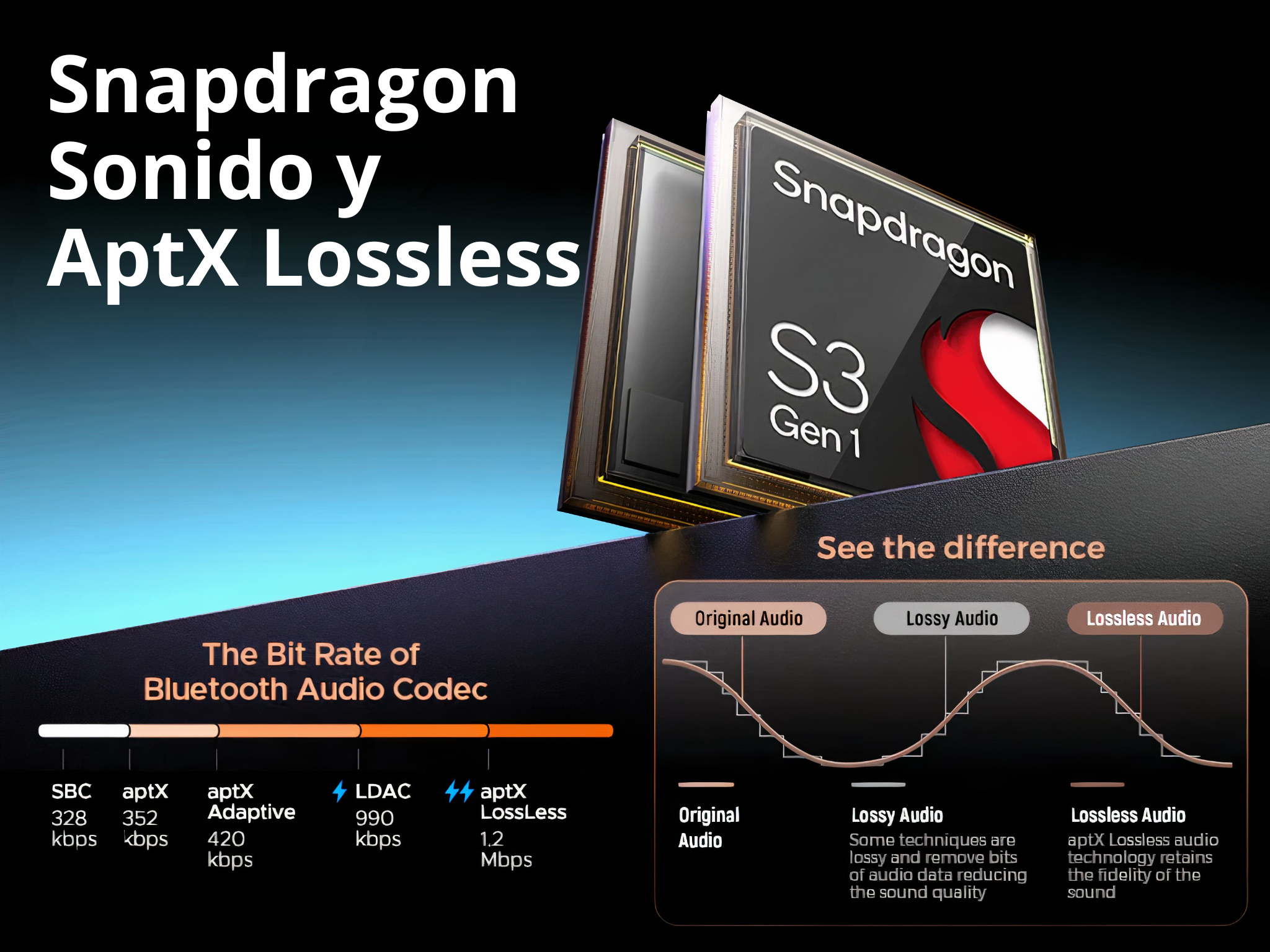Audio de alta resolución: impulsado por Snapdragon Sound™ y Qualcomm® QCC3091 para un sonido de alta fidelidad.