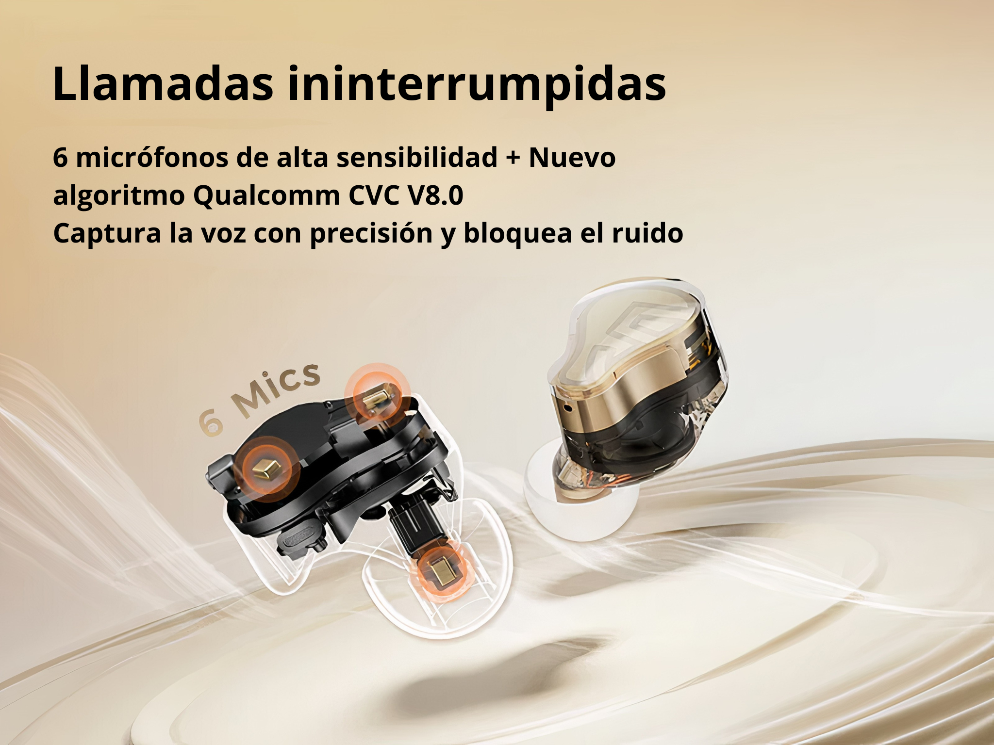 • Llamadas nítidas: 6 micrófonos con IA y cVc™ 8.0 para voz clara y estable.