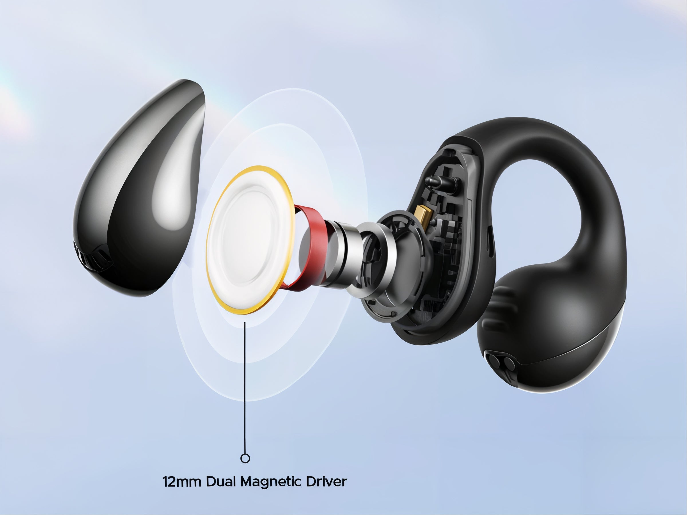 PearlClip Pro te da energía en tus entrenamientos con su potente sonido, similar al de un altavoz, que te mantiene motivado con cada latido. Equipado con dos controladores magnéticos de 12 mm (PU + diafragma niquelado), ofrece una mayor fuerza magnética para obtener agudos nítidos, medios suaves y graves profundos.